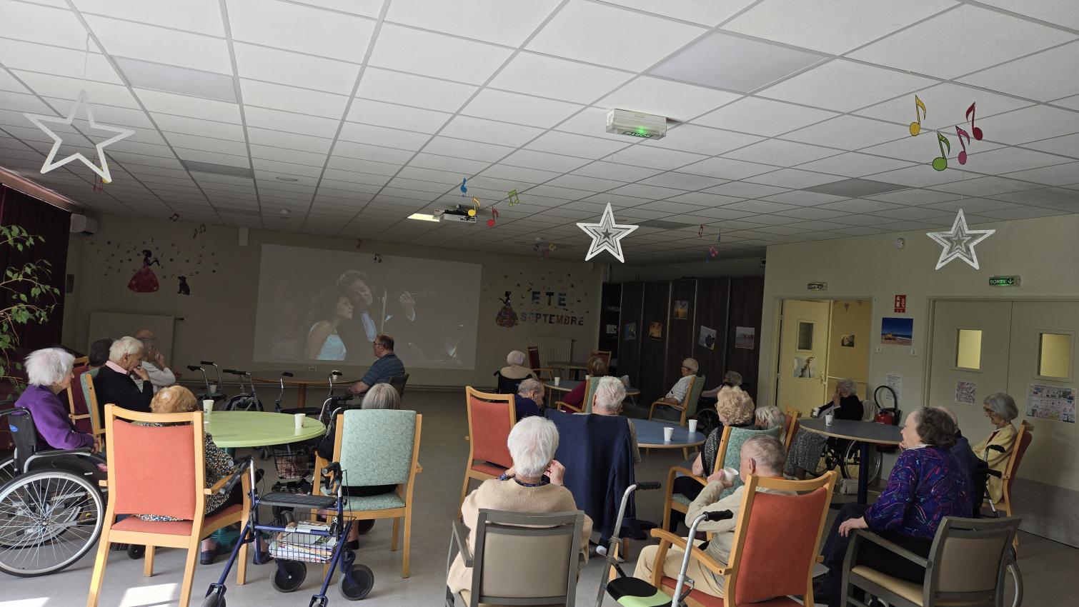 Sortie au cinéma de Sain Bel pour voir le film "En fanfare". Thibaut, un chef d’orchestre de renommée, découvre qu'il a un frère, Jimmy, qui joue du trombone dans une fanfare dans le nord de la France. En apparence tout les sépare, sauf l’amour de la musique… C'est un film riche en émotions. Les résidents ont unanimement apprécié ce film. Certains ont même chanté pendant la projection.