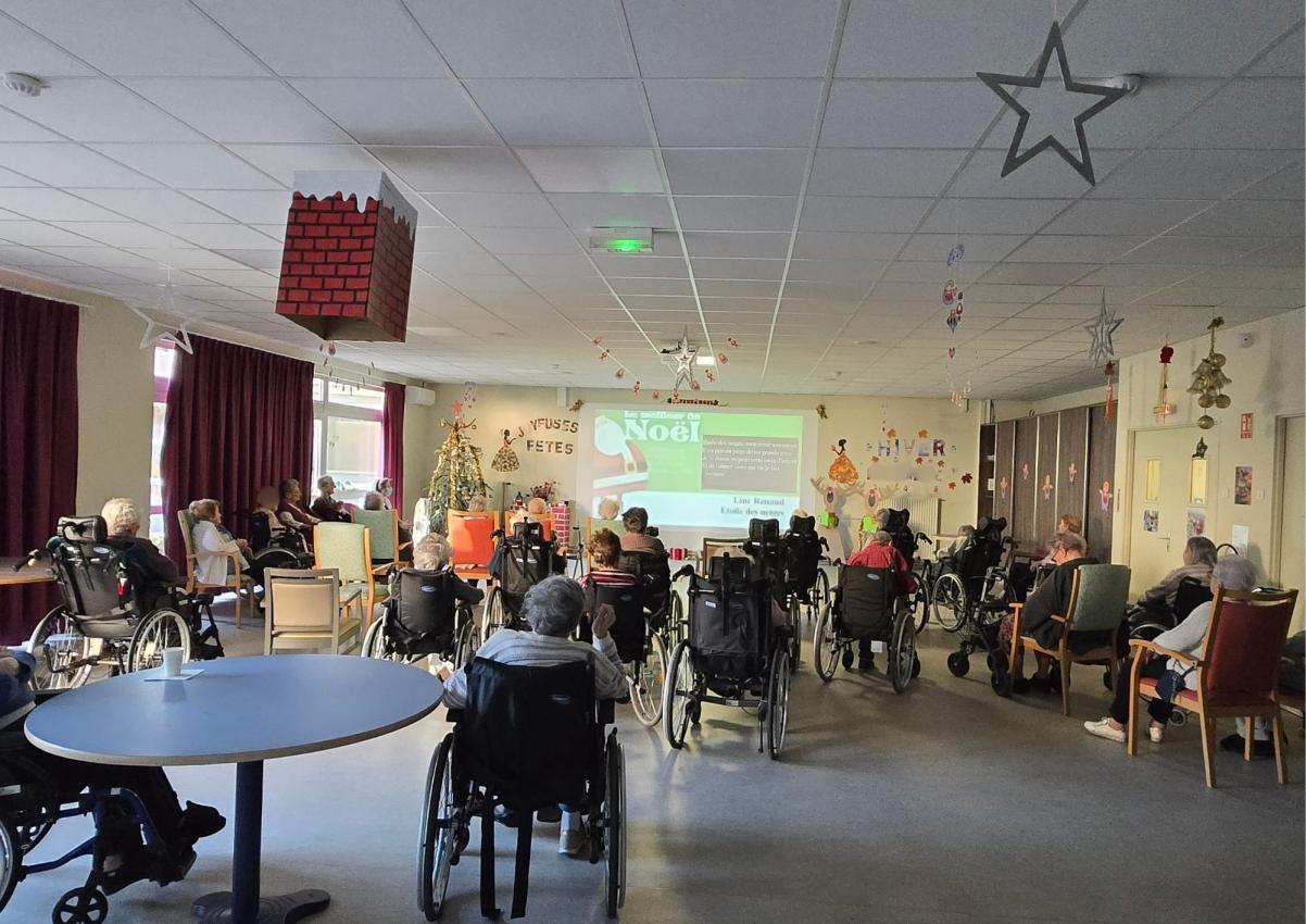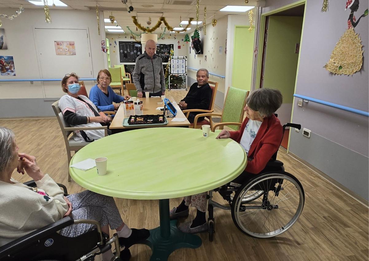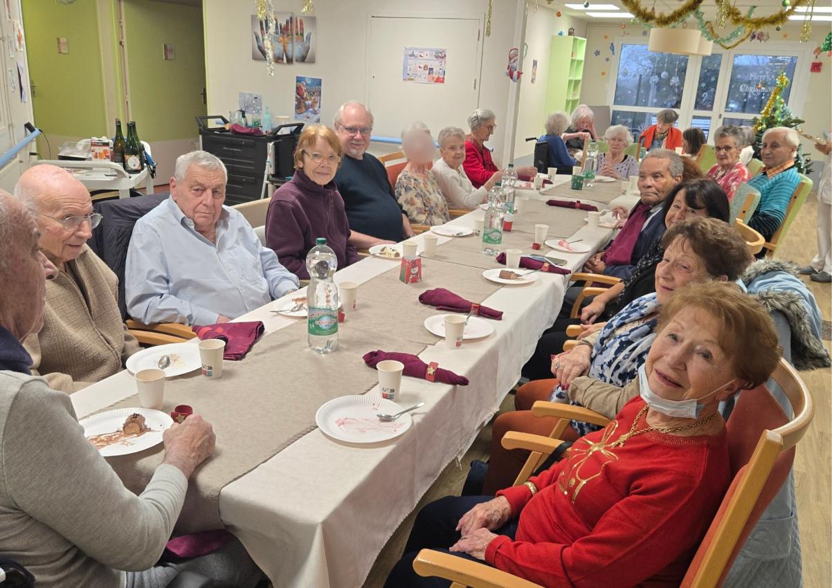 Dans une ambiance festive, les résidents de l'UVP ont partagé une bonne bûche glacée ainsi que d'autres gourmandises avec leur famille et d'autres résidents des étages. Ensemble, nous avons chanté des chants de Noël mais également les incontournables de la variété française de leur génération.