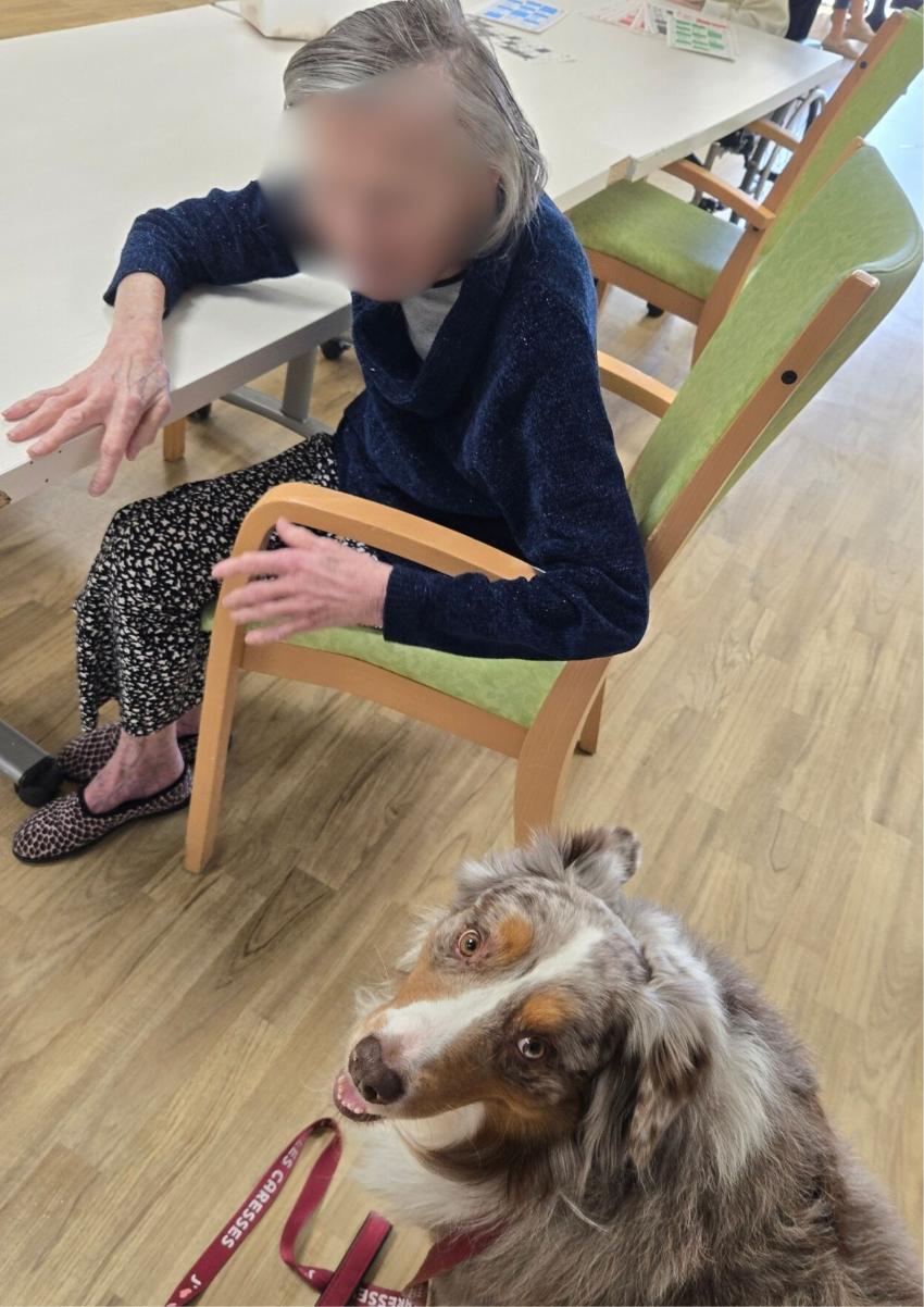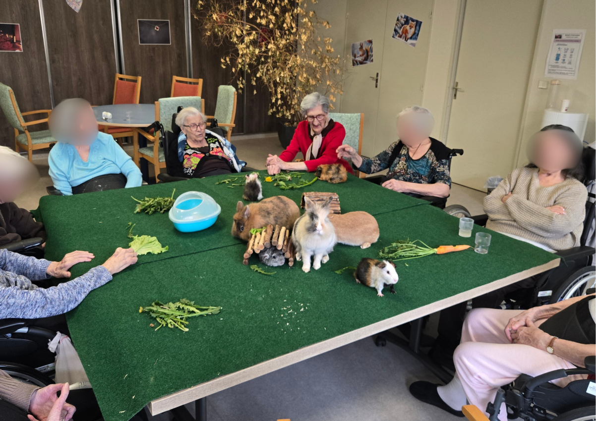 Médiation par l'animal Les mercredis Les résidents attendent avec impatience chaque semaine la visite d'Opium, le chien berger australien, ainsi que celle des petits rongeurs. Ensemble, nous partageons des souvenirs et des anecdotes, créant ainsi de véritables moments de complicité.